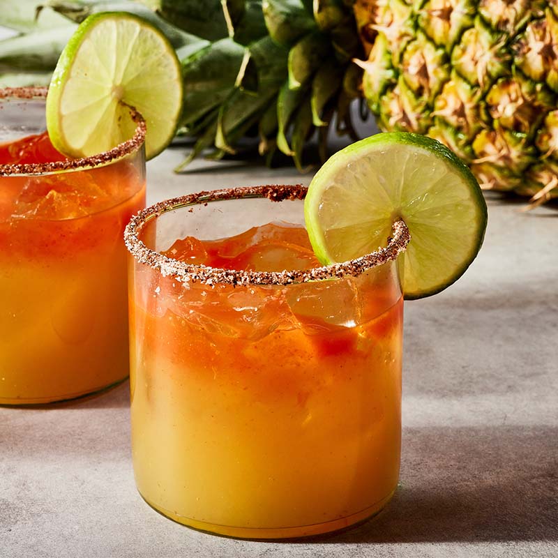 - 2 Fill cocktail shaker with ice. Add pineapple and lime juice, agave, mezcal and triple sec; shake until well mixed and chilled. Divide between prepared glasses.