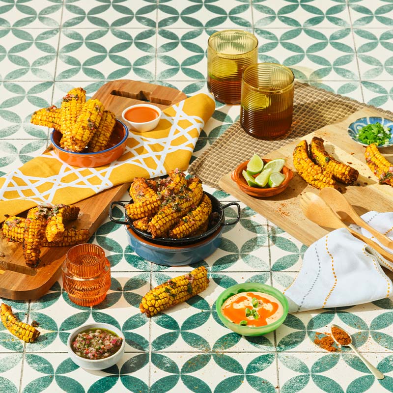 Crunchy corn ribs spiced with Cholula Original Taco Seasoning pairs well with a tangy dressing and spicy Cholula Original Hot Sauce mayonnaise for dipping. Perfect for summer entertaining or simply as a quick snack!