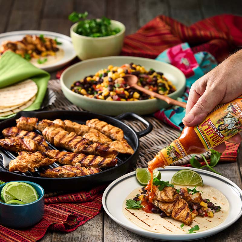 Give new meaning to taco night with Cholula® Chili Garlic Hot Sauce. A refreshing black bean and corn salsa with spicy, grilled fish make for the perfect combo!