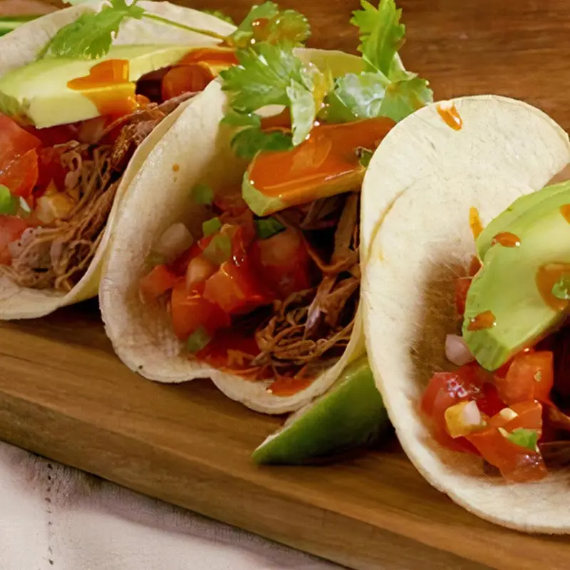 - 7 To assemble tacos, shred brisket with two forks. Layer tortillas with briskey, pico de gallo, and sliced avocado. Drizzle with additional Original Hot Sauce to serve.